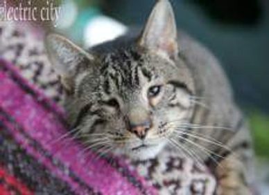 Chipper Jones is one of our oldest animal ambassadors here at A.N.A. Critters. Chipper Jones was also born feral. He was also born blind, has a heart murmur and suffers from FLUTD (Feline Lower Urinary Tract Disease). Chip absolutely LOVES people . He loves showing children, and adults, that being different is OKAY! Chip HISSES at BULLIES! So BEWARE. Bullying is NOT ok with Chip.