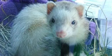 Lilly Bell is a young, sweet ferret who came to us with several other ferrets as part of a hoarding situation. Ferrets are very intelligent animals. Being strictly carnivores...ferrets need a high protein diet. Many people assume feeding kitten food is a good substitute as ferret food. This is wrong and will cause serious health issues for your ferret...even death. Lilly Bell loves playing with Bella The Brave and chasing her around the house.